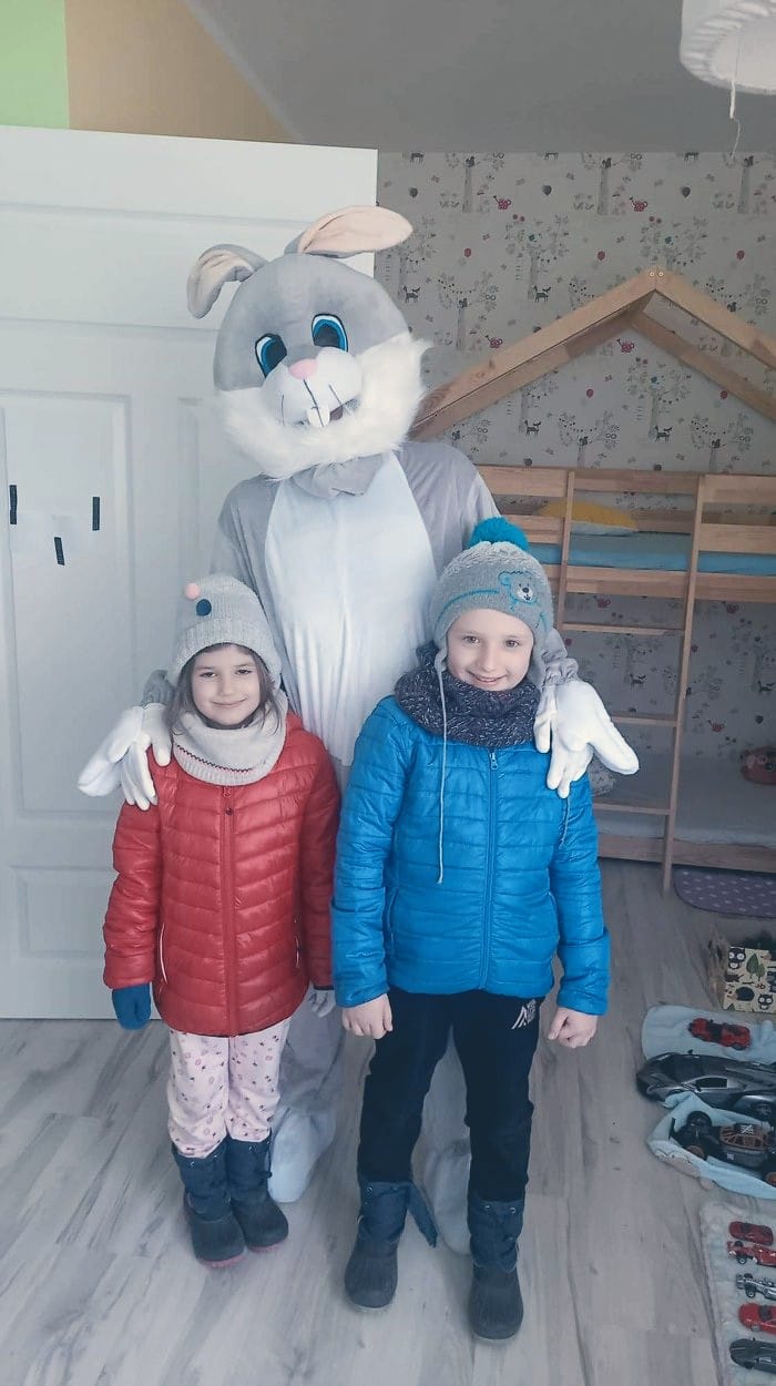 - wizyta zajączka wielkanocnego w domu